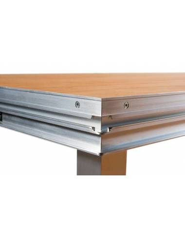 Het podium wordt geleverd met een 22 mm dikke houten plaat voor gebruik binnenshuis.